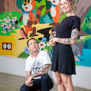 DABSMYLA is the collaborative moniker of Australian husband-and-wife visual artists who have spent over a decade creating art together. Their work is characterized by a shared design language that meticulously dictates every element, from subject matter and positioning to color theory and perspective. This precision results in interconnected pieces that reveal a broader panorama, where individual elements contribute to larger, recurring motifs. Known for their immersive environments, DABSMYLA blends whimsy and grandeur in their paintings, mixed media, and sculptures, seamlessly merging real life with dreamscapes and engaging multiple senses to create a unique, enchanting experience.