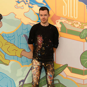 Doras is a multi-disciplinary artist, illustrator, muralist, and director based in Montréal, QC. He has been working as an artist for a decade and painting murals since 2017. His work draws from his background in narrative illustration, rendered in a style that focuses heavily on the scale, contour, and color relationships.